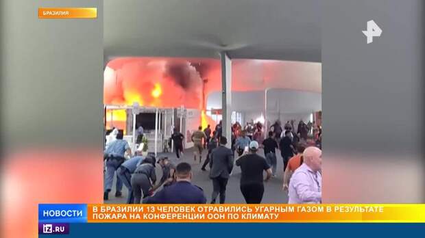 По-настоящему жаркий прием устроили участникам конференеции ООН по климату, которая сейчас проходит в Бразилии. В одном из павильонов загорелся стенд, деревянные и пластиковые конструкции вспыхнули словно спичка, и пламя за секунду дошло до потолка.