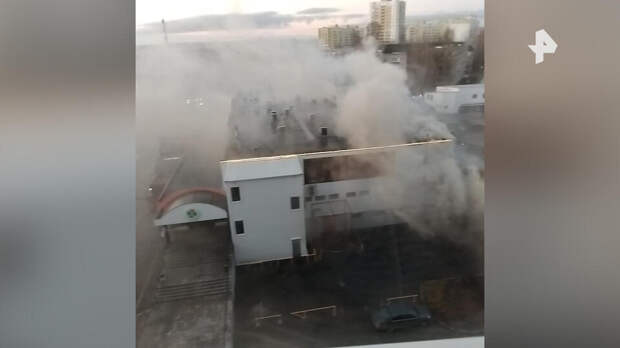 Сообщение о возгорании на улице Калинина поступило спасателям около 07:14 (мск). Очевидцы опубликовали в Сети кадры, на которых над зданием ТЦ поднялся дым.