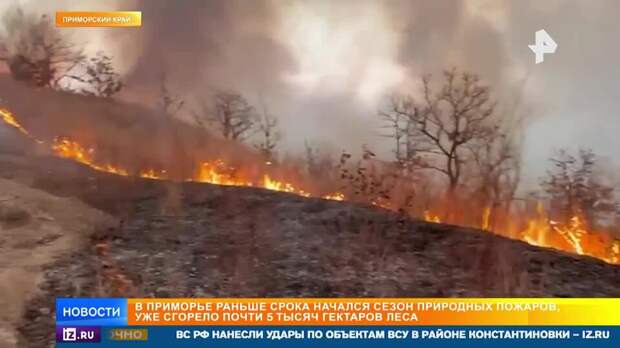 Сезон природных пожаров в Приморье начался раньше срока. Большое возгорание охватило леса на юге края.