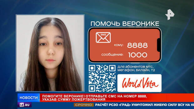 Давайте поможем Веронике вместе. Достаточно навести камеру смартфона на QR-код и перейти по ссылке, там будет кнопка "помочь", или отправить СМС на номер 8888, в тексте указать любую сумму. Другие способы и реквизиты есть на сайте. Большое вам спасибо!