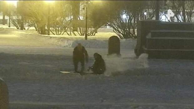 На кадрах, сделанных камерой видеонаблюдения, видно, что злоумышленник около 23:00 пришел к мемориалу с приятелем и залил огонь. Затем они оба скрылись.