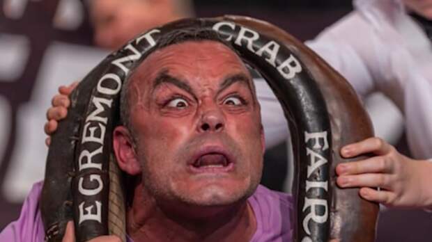 Старинная британская забава с недавних пор приобрела там статус международного соревнования. По условиям, конкурсанты должны надеть на себя лошадиный хомут и кривляться, чем сильней, тем лучше.