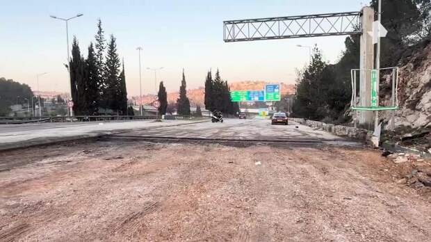 В районе, куда попала иранская ракета, велись дорожные работы, поэтому уже к утру рабочие заделали воронку от попадания ракеты.