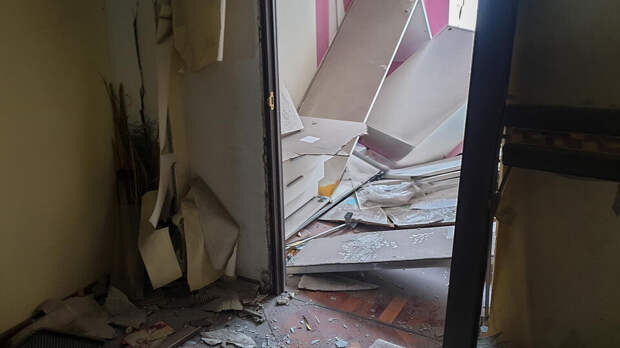 На опубликованных кадрах видны серьезные разрушения: в помещениях выбиты стекла, повреждены потолки и стены, разбита оргтехника.