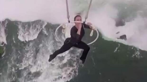 Акробатка Эрендира Валленда выполнила опасные трюки над Ниагарским водопадом на обруче. Девушка повисла над бездной на зубах.