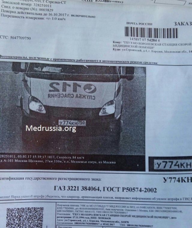Штраф был выписан на имя самого водителя "скорой".