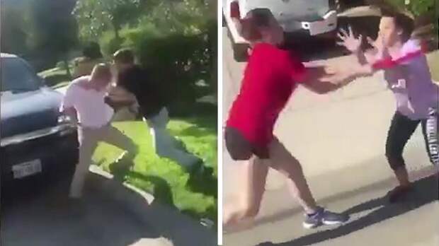 Очевидец запечатлел на видео конфликт, произошедший между двумя семьями в одном из американских пригородов. Судя по кадрам, вспыхнувшая по неизвестной причине ссора быстро переросла в кровавую бойню.