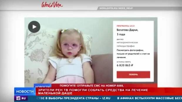 Зрители РЕН ТВ подарили трехлетней Даше из Белгородской области шанс на выздоровление. Сегодня мы говорим спасибо каждому из вас, кто не остался в стороне. Историю Даши мы рассказывали ранее в нашем эфире - девочке нужна срочная дорогая операция, которая теперь будет сделана.