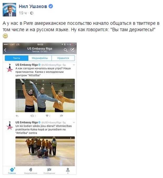 Мэр Риги Нил Ушаков сообщил, что МИД Латвии официально заговорил по-русски.