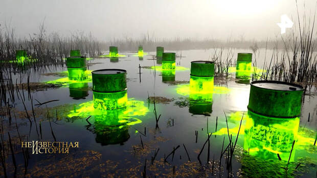 Кадр из программы "Неизвестная история", РЕН ТВ "Несмотря на то, что в воде концентрация загрязняющих веществ была незначительной, а вот донные отложения имели все загрязняющие вещества в значительном объеме, превышающие все мыслимые предельно допустимые концентрации", – сообщил Пинаев.