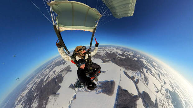 Под "крылом" управляемого парашюта спецназовцы развивают скорость до 30 км/ч. Маневрируя в воздушных потоках, выбирают место для приземления с точностью до метра. Но зимний ландшафт непредсказуем. Снег скрывает особенности рельефа.