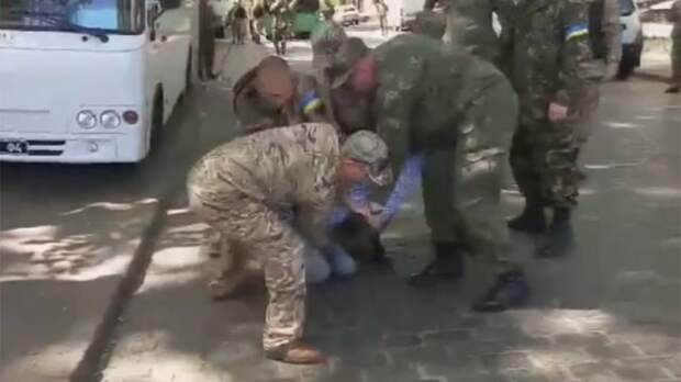 На Куликовом поле в Одессе задержали нетрезвого мужчину. В Сети появилось видео, как на пьяного молодого человека набрасываются стражи порядка.