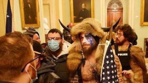 Среди сторонников Дональда Трампа, ворвавшихся в здание Капитолия, был замечен мужчина в костюме викинга - на его плечи была накинута звериная шкура, а на голову надет рогатый шлем.