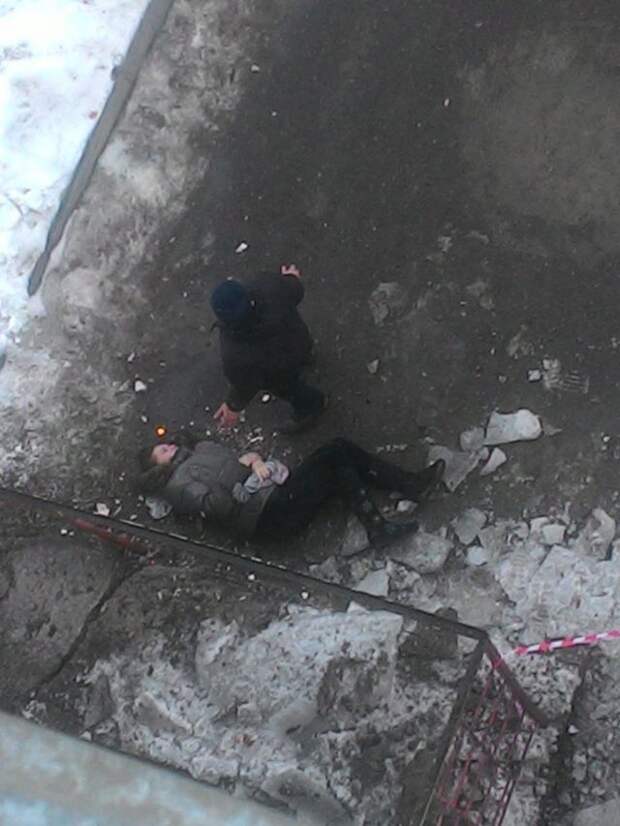 Очевидцы сообщают, что в Красноярске козырек подъезда многоквартирного дома обрушился на местную жительницу.