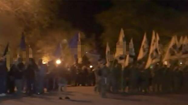Несколько сотен бойцов прошлись маршем по центральным улицам, после чего устроили факельное шествие и митинг.