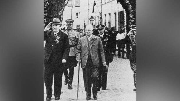 Президент Финляндии Пер Эвинд Свинхувуд) и президент Эстонии Константин Пятс. 1936 г. Во время существования Эстонской Республики практически все русские топонимы были заменены на эстонские. В частности, Печорский край современной Псковской области был переименован в Петсеримаа, а города Печоры и Изборск – в Петсери и Ирбоска. Параллельно осуществлялась политика принудительной замены русских имен и фамилий на эстонские. В результате более 250 тысяч представителей национальных меньшинств, прежде всего русских, были превращены в «эстонцев».