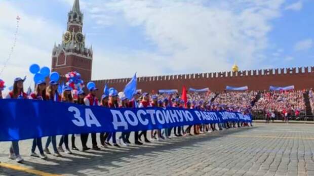 В акции принимают участие студенты, ветераны, представители профсоюзов.