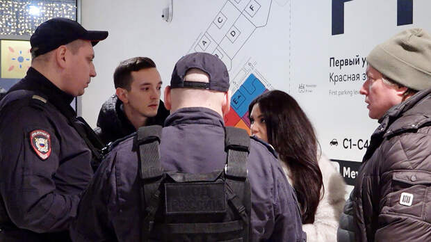 Пока пострадавшие пытались достучаться до администрации, к съемочной группе подошел человек в сером костюме и представился сотрудником торгового центра. Он сообщил, что пообщаться с администрацией торгового центра можно только после того, как будет сделан запрос в полицию.