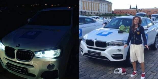 Российские призеры Олимпийских игр в Рио выкладывают в Сеть фотографии с "трофейными" BMW, которые им вручило правительство РФ.