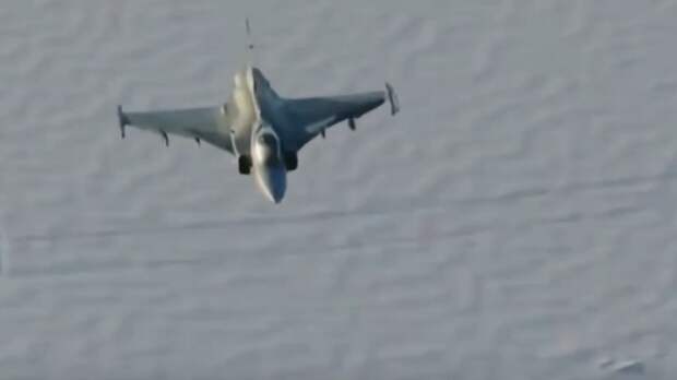 Скриншот видео "Наша "сушка" может выполнять свои задачи на удалении до тысячи километров. То есть, для того, чтобы догнать нашу "сушку" и произвести по ней стрельбу, он должен долгое время находится в воздухе, что требует от него подцепления дополнительных баков. А подцепление дополнительных баков – это снижение энерговооруженности. И в этом, собственно говоря, Gripen намного уступает "сушке", – говорит Матвийчук.
