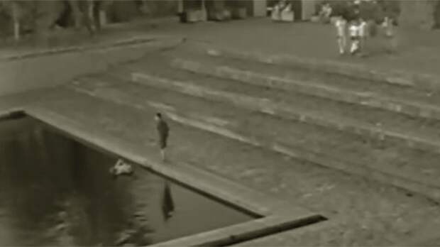 На записи камер наблюдения видно, как трое подростков лет пятнадцати спустились к Озеру слез и зашли в воду.