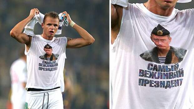 Напомним, сегодня УЕФА оштрафовал Тарасова на 5 тысяч евро за эпизод, произошедший 16 февраля в Стамбуле. После первого матча российской и турецкой команд в 1/16 Лиги Европы УЕФА Тарасов снял игровую футболку, под которой оказалась майка с изображением Путина и надписью "Самый вежливый президент".