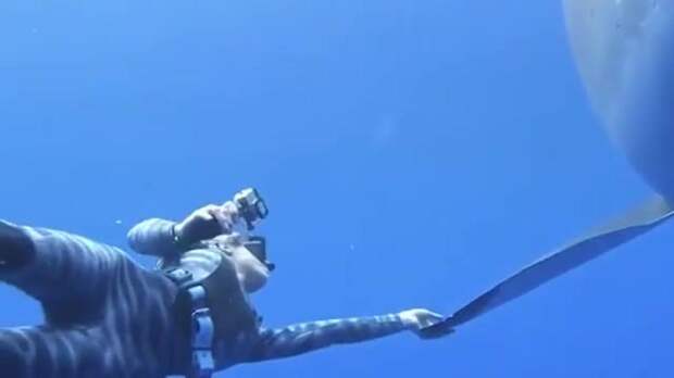 После она прикасается к грудному плавнику и следует за рыбой.Запись стала вирусной, собрав более девяти миллионов просмотров. Некоторые из пользователей не поверили в то, что дайвер смогла остаться невредимой после встречи с хищником.