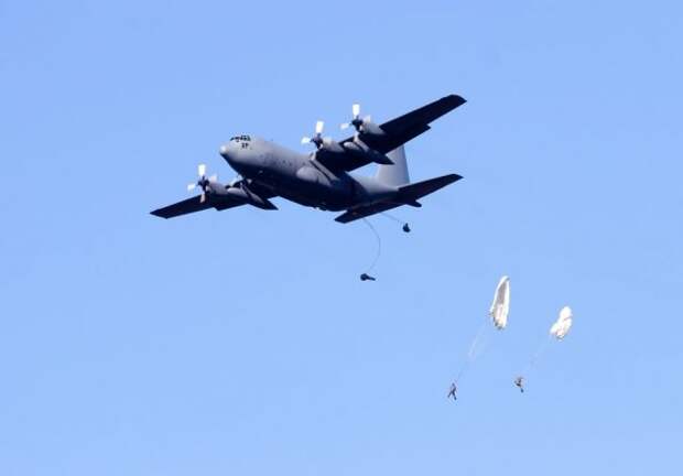 Напоминаем, что учения начались в пятницу поздним вечером. В задачи операции входит совершение парашютной высадки и отработка упражнений по окружению и захвату авиабазы, которой овладел противник.