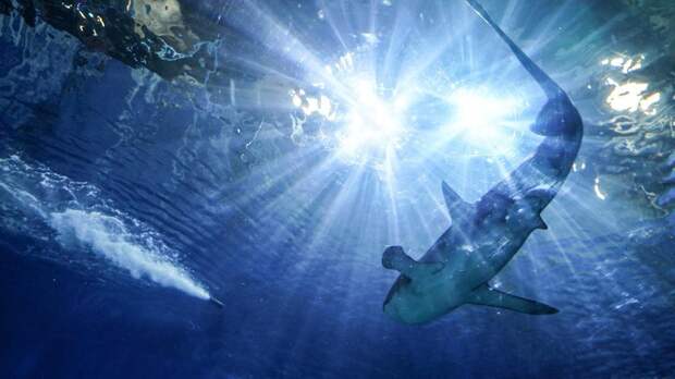 К подводному скутеру прикрепили камеру GoPro и настроили ее на обычную для акул скорость.