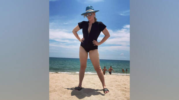 На снимке известная пышными формами блондинка продемонстрировала стройные ноги и похудевшее лицо.