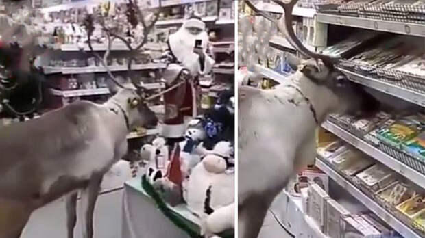 "Праздник к нам приходит!", "Да уж, у нас в Сибири не только медведи по улицам ходят, но и олени по магазинам гуляют!", "Так вот как детям подарки выбирают", "За подарочками детишкам под елочку", — писали комментаторы.