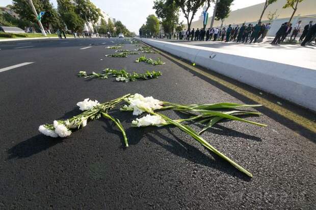 В Ташкенте и Самарканде, где был захоронен Каримов, люди усеивали цветами улицы, по которым проезжал траурный кортеж с телом усопшего.