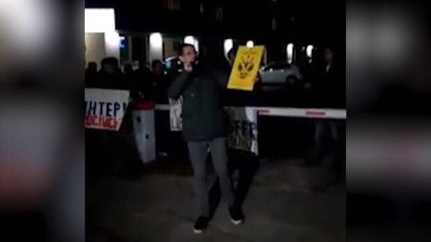 Около здания телеканала собрались патрульные машины.Собралось около 50 человек. Они пришли с флагами и плакатами. Стражи порядка занимаются проверкой их документов и вещей. Собравшиеся люди заверили, что не будут устраивать драк, а сама акция мирная.