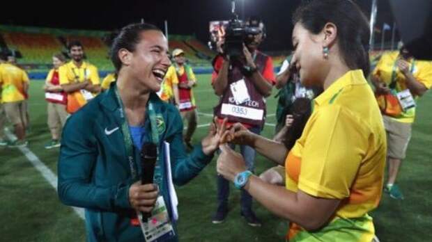Член сборной Бразилии по регби Исадора Серулло получила предложение выйти замуж от своей девушки Марджори Энни, которая приехала на Олимпийские игры в Рио волонтером. Об этом сообщает The Daily Mail.