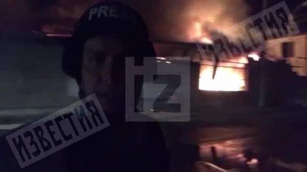 "Мы оказались в месте, куда упал снаряд. Здесь склад, и рядом находятся линии электросети, по которым, по словам властей, приходился удар. Люди смотрят, как догорает помещение. Тут же рядом жилой дом, все, кто там находился, сейчас прячутся в подвале", - сообщил корреспондент "Известий" Дмитрий Кулага.