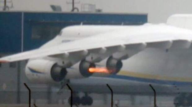 Грузовой самолет был вынужден приземлиться – на ролике запечатлен пожар второго из шести двигателей Ан-225.