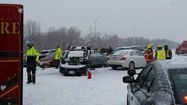 Более 100 автомобилей столкнулись недалеко от Торонто из-за сильного снегопада. В двух направлениях закрыт участок федеральной трассы протяженностью 30 км между городами Боуманвилль и Порт-Хоуп, сообщает CBC.