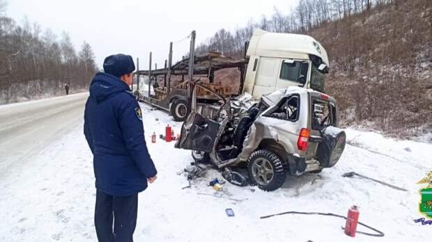 t.me/УМВД России по Еврейской автономной области Два человека погибли в результате ДТП с автовозом на федеральной автодороге "Амур" в Еврейской автономной области. Об этом 22 ноября сообщает УМВД России по региону.
