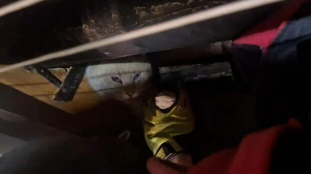 Застрявшего между труб кота спасли в Москве
