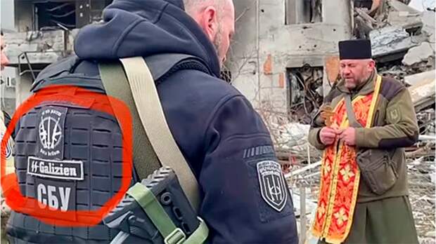 Британская The Sun опубликовала репортаж о молебне по жертвам в посёлке Бородянка. В кадр попал сотрудник СБУ, у которого на спине была нашивка с изображением эмблемы дивизии СС Галичина.