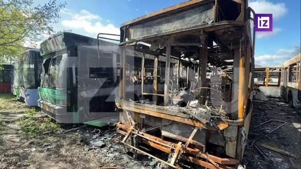 "Дрон ударил в один из автобусов. Началось возгорание, которое перекинулось на другие автобусы. Минимум пять полностью сгорели, еще два повреждены", – рассказал корреспондент "Известий" Евгений Быковский.