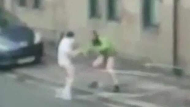 Очевидцы запечатлели поединок двух мужчин, которые вылезли на улицу из окна второго этажа без штанов. После того как один из героев видео вылез из окна, очевидно, вслед за тем, который уже щеголял обнаженными ягодицами на одной из улиц города, между ними завязалась драка.