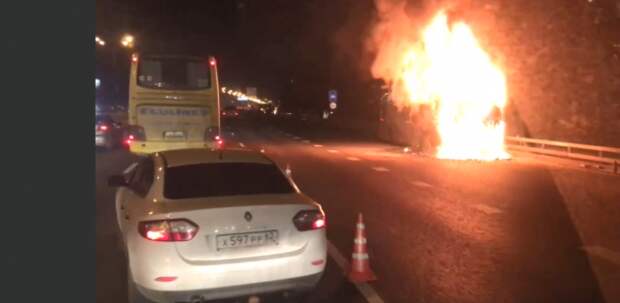 Очевидцы сообщили о возгорании автобуса на 72-м км МКАД.