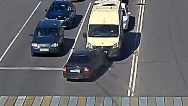 На кадрах видно, как водитель отечественного авто, поворачивая, не справился с управлением.