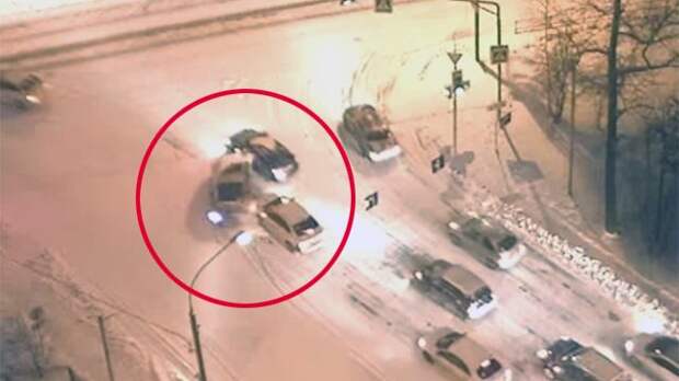 На кадрах видно, как водитель одного авто не справился с управлением из-за возникшего гололеда, вылетел на встречку, не сумев затормозить, а затем врезался в машину, ехавшую во встречном направлении.