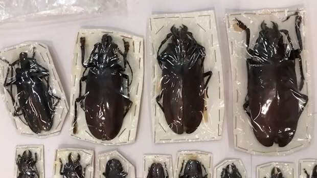 Некоторые из жуков – например, ночной дровосек-титан из семейства усачей – достигали в длину 20 см. В посылках также присутствовали жуки-долгоносики и жуки-носороги.
