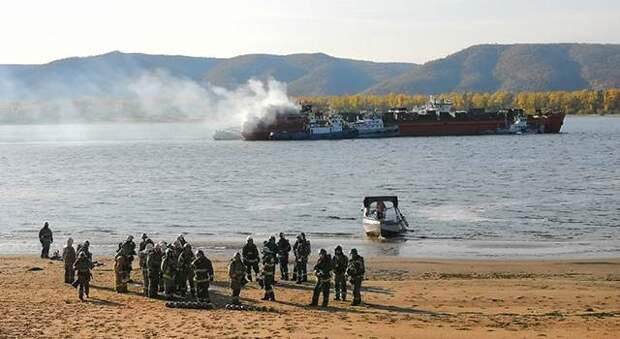 "Прибыл пожарный катер, производит тушение пожара, пожарные продолжают готовить снаряжение для убытия на буксиры", — пояснили в ведомстве.