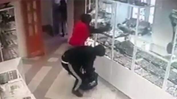 На кадрах записи видно, что трое злоумышленников ворвались в здание и незамедлительно начали крушить витрины.