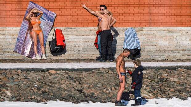 Жители Северной столицы решили не ждать наступления теплой погоды в Санкт-Петербурга и, воспользовавшись солнечным днем, пришли на пляж у Петропавловской крепости, чтобы позагорать. Принимать солнечные ванны закаленные петербуржцы решили в одних купальниках и теплых зимних сапогах.