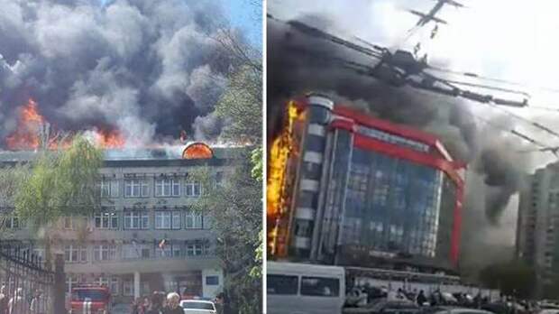 В центре Кишинева загорелись сразу два здания - Институт Зоологии Академии наук и торговое здание.